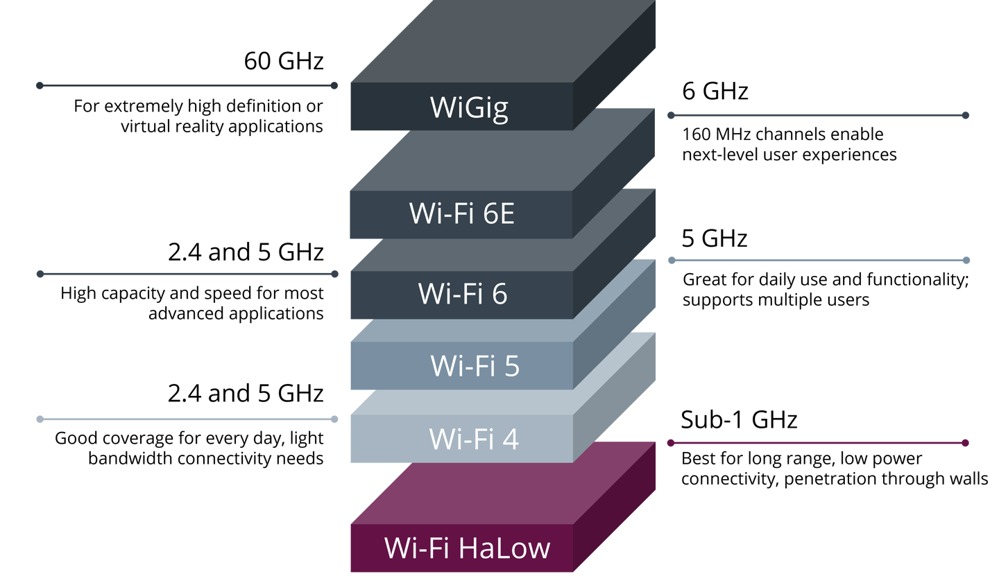 根据 Wi-Fi 联盟提供的定义,Wi-Fi CERTIFIED HaLow 是指采用 IEEE 802.11ah 技术的认证产品,此类产品旨在通过 1Ghz 免授权频段提供低功耗、长距离的无线局域网络,从而扩大 Wi-Fi 适用范围。