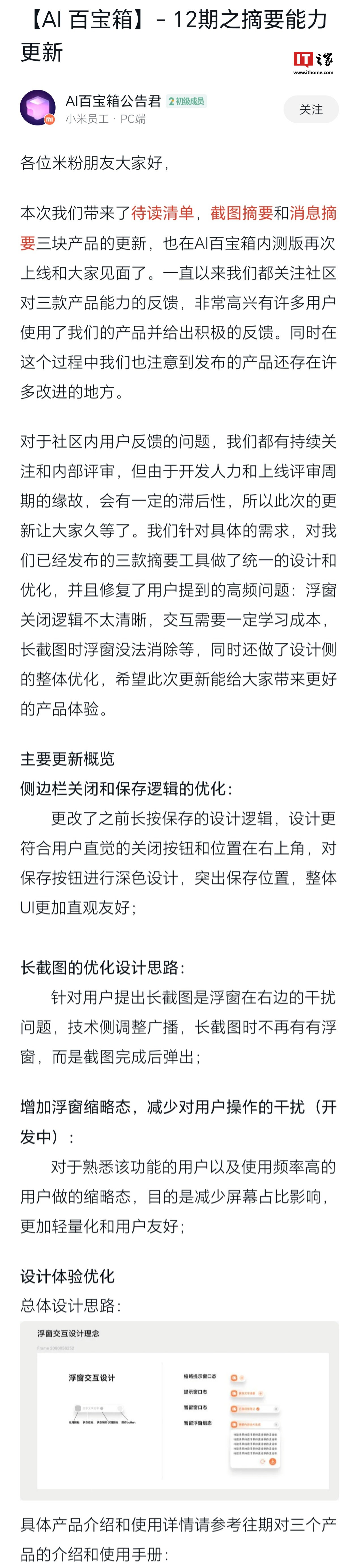 文章来源于互联网:IT之家-小米 AI 百宝箱内测版“待读清单”“截图摘要”“消息摘要”功能重新上线