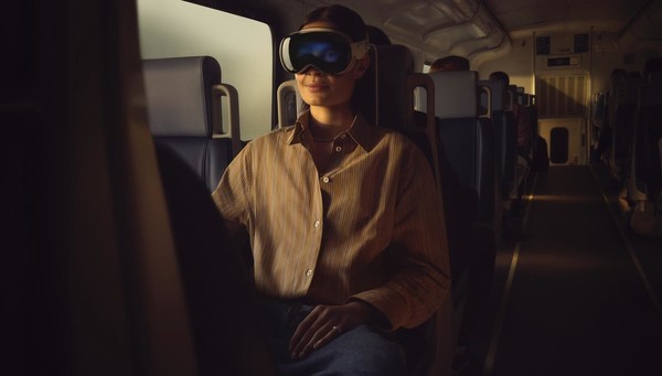 visionOS 2也为Apple Vision Pro引入了新手势,让用户更方便地访问主屏幕视图以及使用其他功能。现在,用户只需将手放到面前并双指互点,就能快速进入主屏幕视图;翻转手掌即可查看时间和电池剩余电量,调整音量,甚至访问控制中心。在visionOS 2里,深受用户喜爱的常用app和功能也得到进一步提升,旅行模式添加了对火车的支持。现在无论在飞机还是列车上,用户都可以沉浸在优美“环境”中,使用多个app不受打扰地工作。在Safari浏览器里,用户可以在任意“环境”中,通过巨幕欣赏网站上的视频内容,屏幕还会发出优美的光彩和反射效果,营造赏心悦目的观影体验。