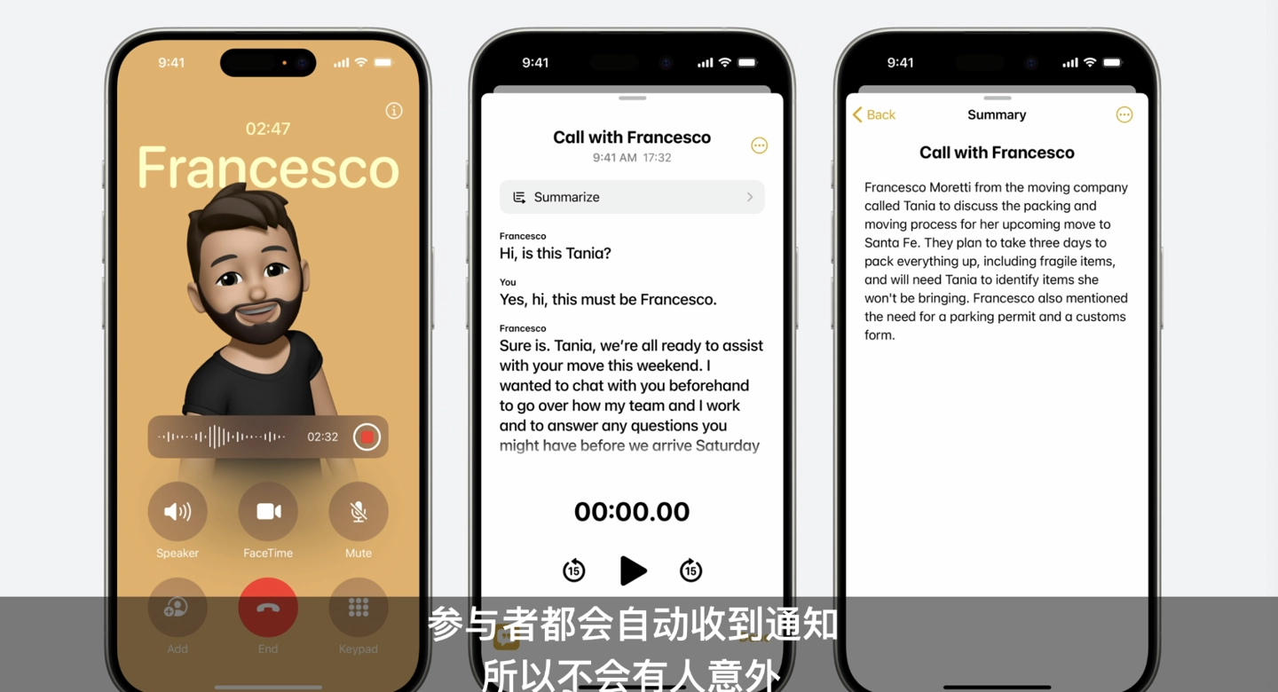 Apple Intelligence 还会生成录音信息摘要,音频将被录制并保存到 Notes 应用中。