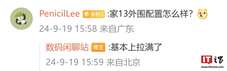 他还提到,全系大内存的供应量也非常可观,估计这次顶配价格也会高人一等。在评论区博主回复称一加 13 手机外围配置“基本上拉满了”。