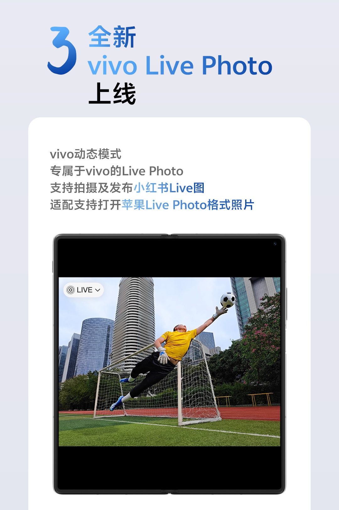 全新 vivo Live Photo 上线:vivo 动态模式支持拍摄及发布小红书 Live 图,适配支持打开苹果 Live Photo 格式照片。