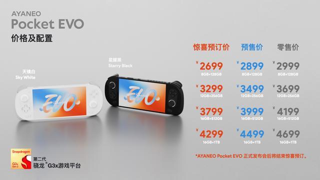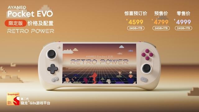 AYANEO Pocket EVO 为一款安卓掌机,已在官网开启预订,预订价 2699 元起。另外,该掌机配置信息已于今年 8 月公布,核心配置包括配备 7 英寸 OLED 120Hz 高刷屏,并搭载第二代骁龙 G3x 处理器。