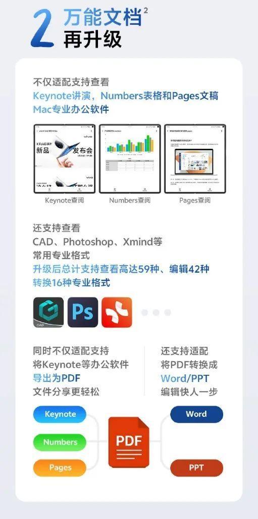 这次更新不仅加强了与Mac设备的互联便捷,还大幅提升了手机处理专业文档的能力,对于vivo X Fold3的用户来讲,这次更新带来了全新的体验。