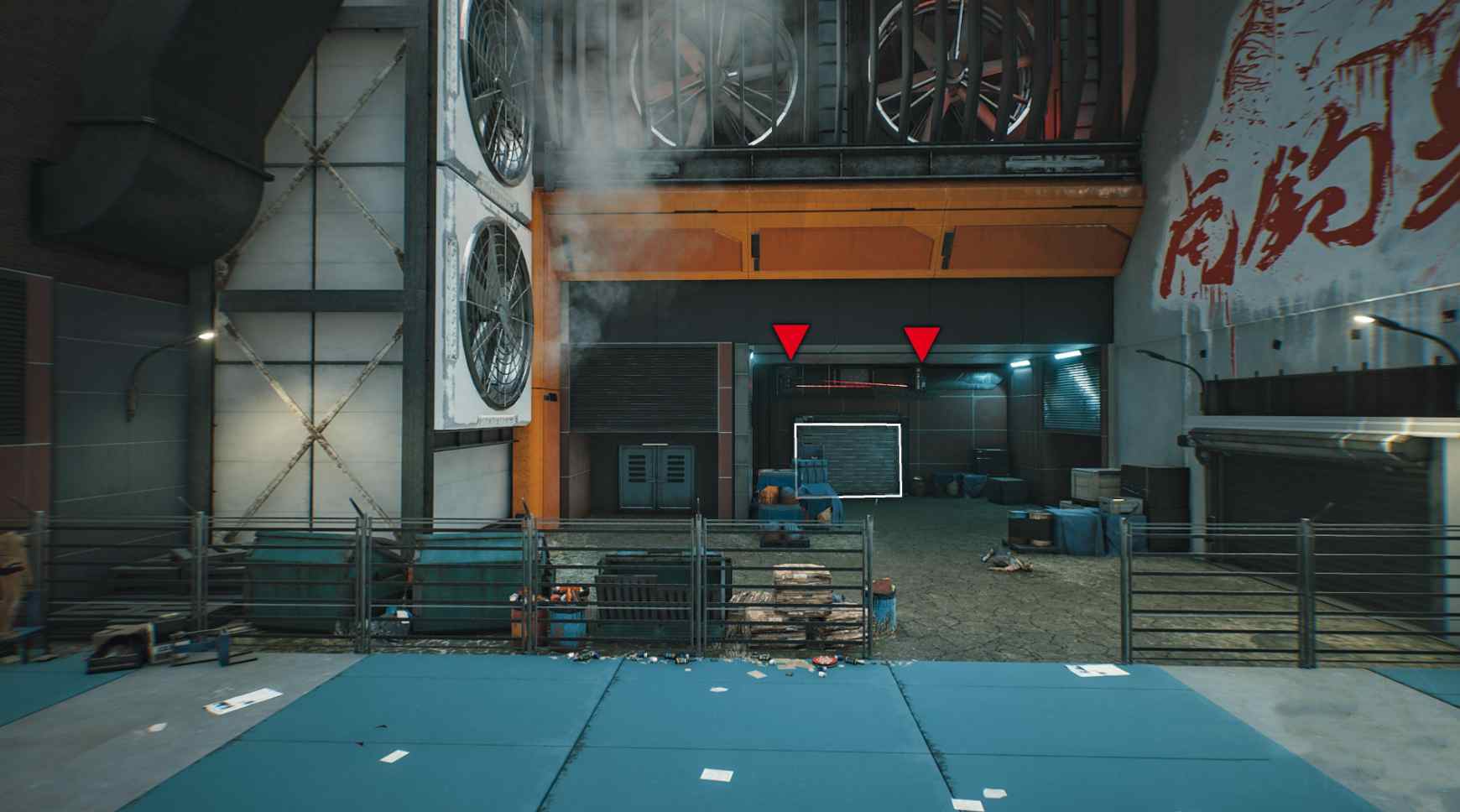 经过经销商后,可以在房间远端的楼梯顶部找到数据终端,隐藏在一些工业板条箱后面。