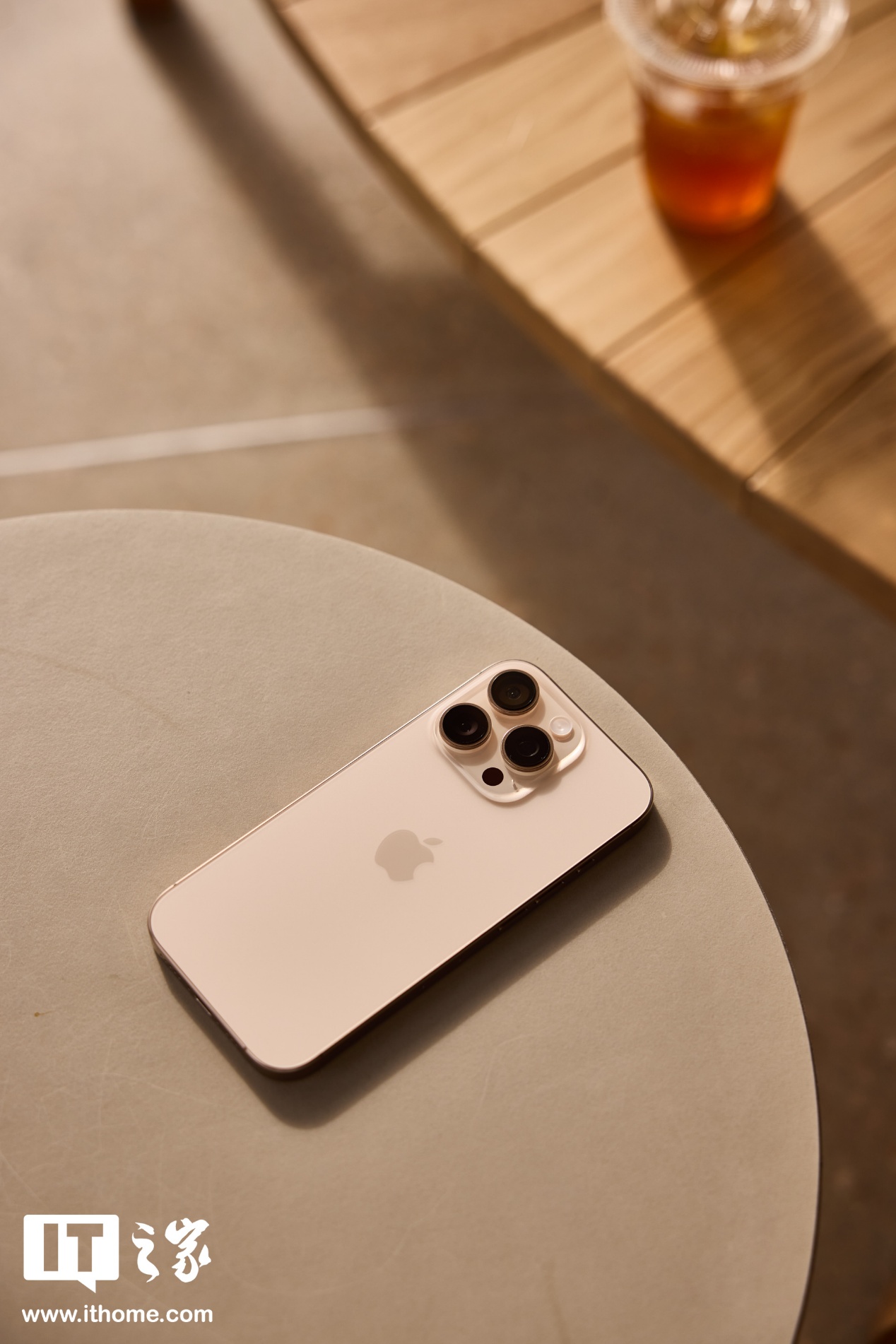 IT之家的家友们可不要被渲染图所欺骗。沙漠色玻璃背板的颜色十分克制,像是当年 iPhone 8 上的浅金色的雾面版,在光影下还会呈现出粉色光泽,有着“玫瑰金”般的典雅感。【IT之家评测室】到手 iPhone 16 / Pro 三天三夜后,我要说些话了
