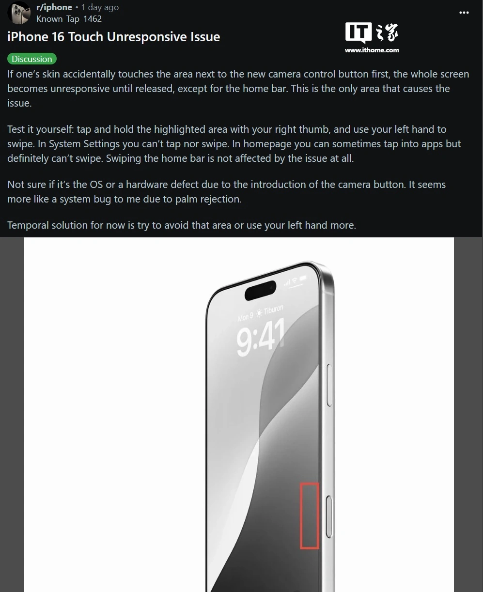 文章来源于互联网:IT之家-用户反映苹果 iPhone 16 Pro 出现触摸屏失灵问题,或与 iOS 18 有关