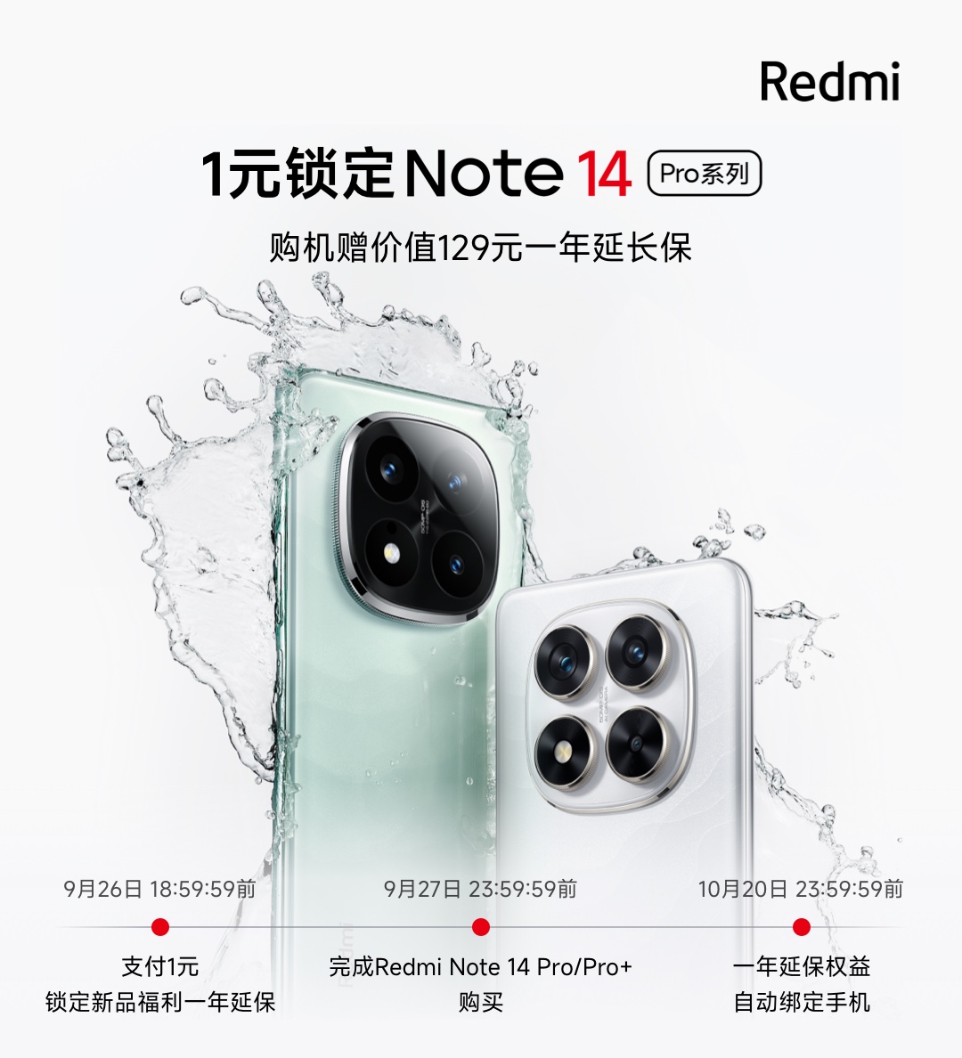 IT之家此前报道,小米 Redmi Note 14 Pro 系列通过南德 IP66 / IP68 / IP69 测试和南德 2 米 24 小时防水测试,首销免费送“进水保”。