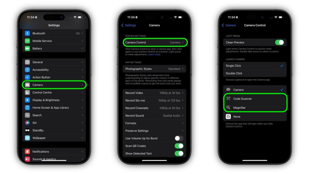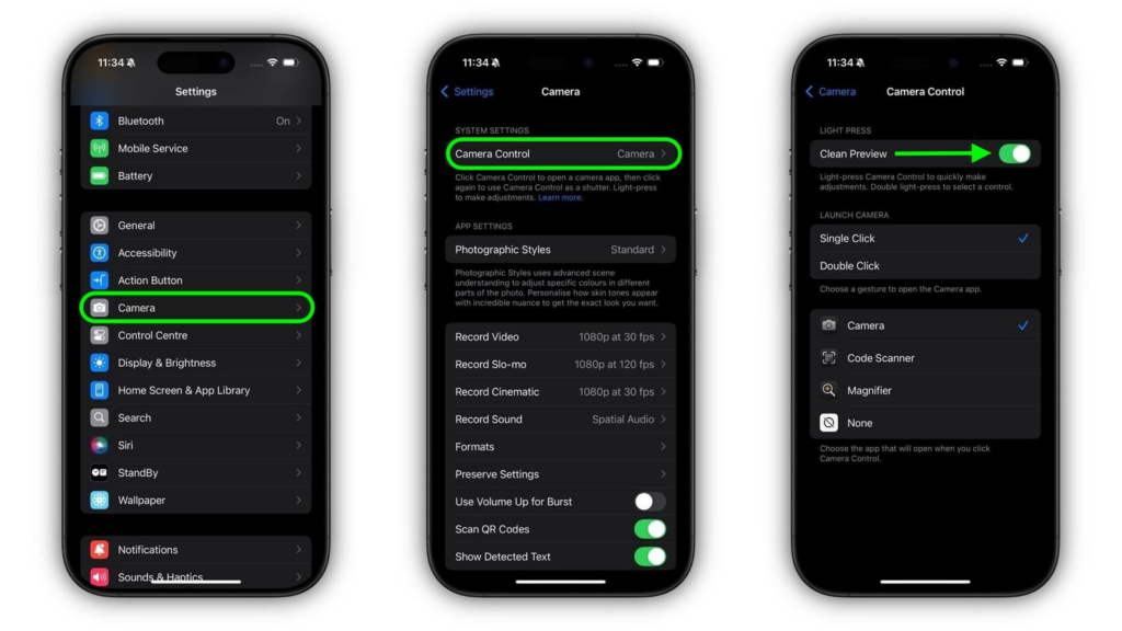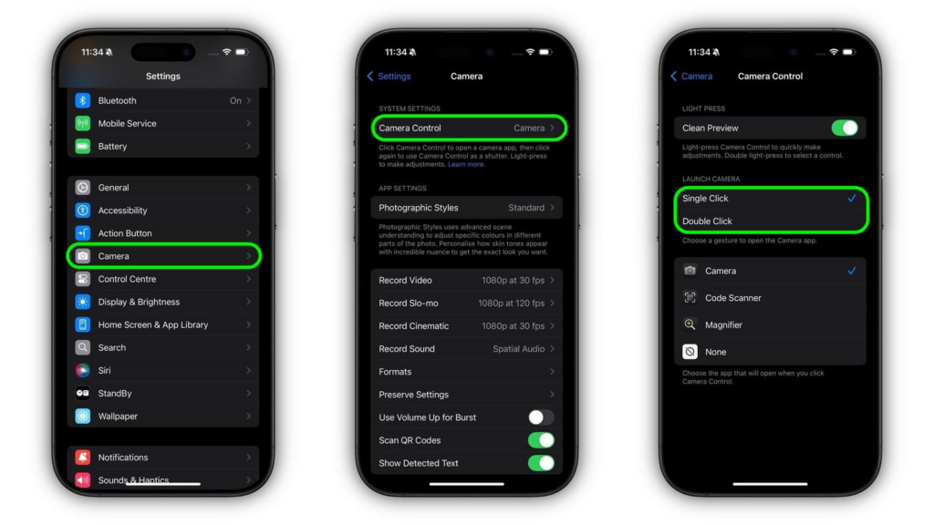 完成此操作后,单击相机控制按钮将不再有任何效果,而双击则会打开相机应用,或者你已经为该按钮指定的任何第三方相机应用。