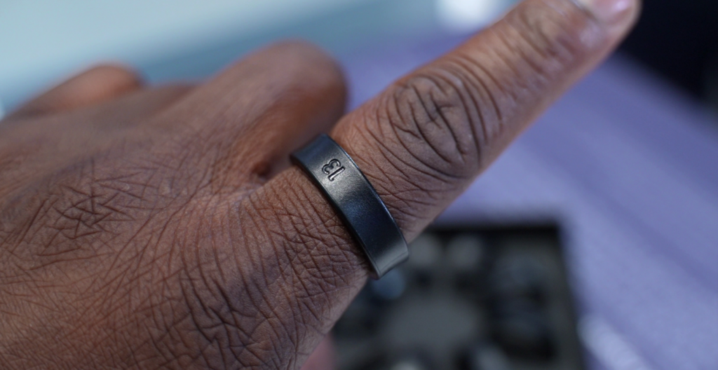 在购买 Galaxy Ring 时,您将收到一个尺寸套件,以帮助您在 5 到 13 号之间确定合适的尺码。我通常佩戴 8 或 9 号戒指,但在试戴“样品”戒指时,发现自己介于 9 号和 10 号之间。因此,确保合适的尺寸非常重要。为了使智能戒指发挥有效作用,既需佩戴舒适,又要保持与皮肤的接触,以便收集数据。三星建议将 Galaxy Ring 戴在食指上,部分原因是这也是您将使用手势功能的手指。
