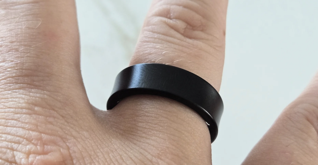 Galaxy Ring 的宽度仅为 7mm,厚度为 2.6mm,显得比大多数智能戒指更为小巧。三星采用了凹形设计,进一步突显了其纤细的轮廓,使其在佩戴时几乎不显眼。可以说,这是我们见过的最不具智能戒指特征的智能戒指,这也正是该类别产品的应有之义。