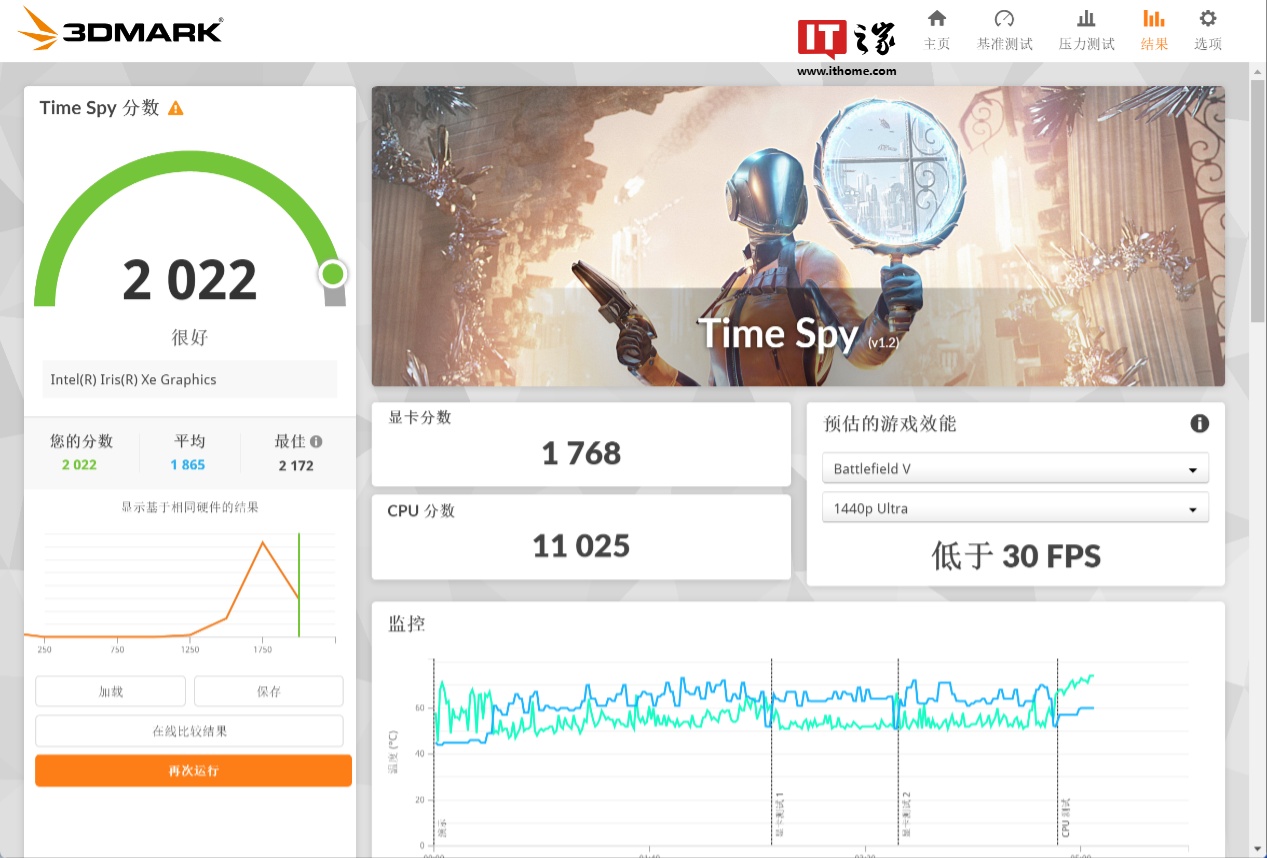 在不连接拓展坞仅使用主机的情况下进行双烤,零刻 GTi12 UItra 保证 65W 性能释放,这时 CPU 与 GPU 各占约一半功耗,确保在游戏时也能拥有足够的性能发挥。