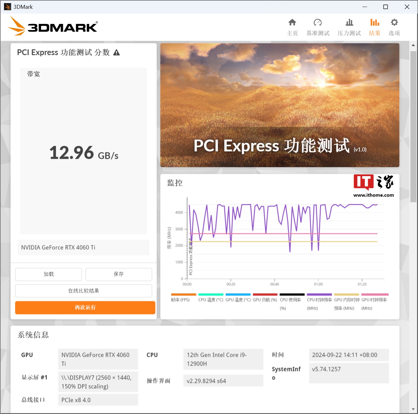 在 3DMark PCI-Express 功能测试中,RTX4060 Ti 带宽达到 12.48GB/s