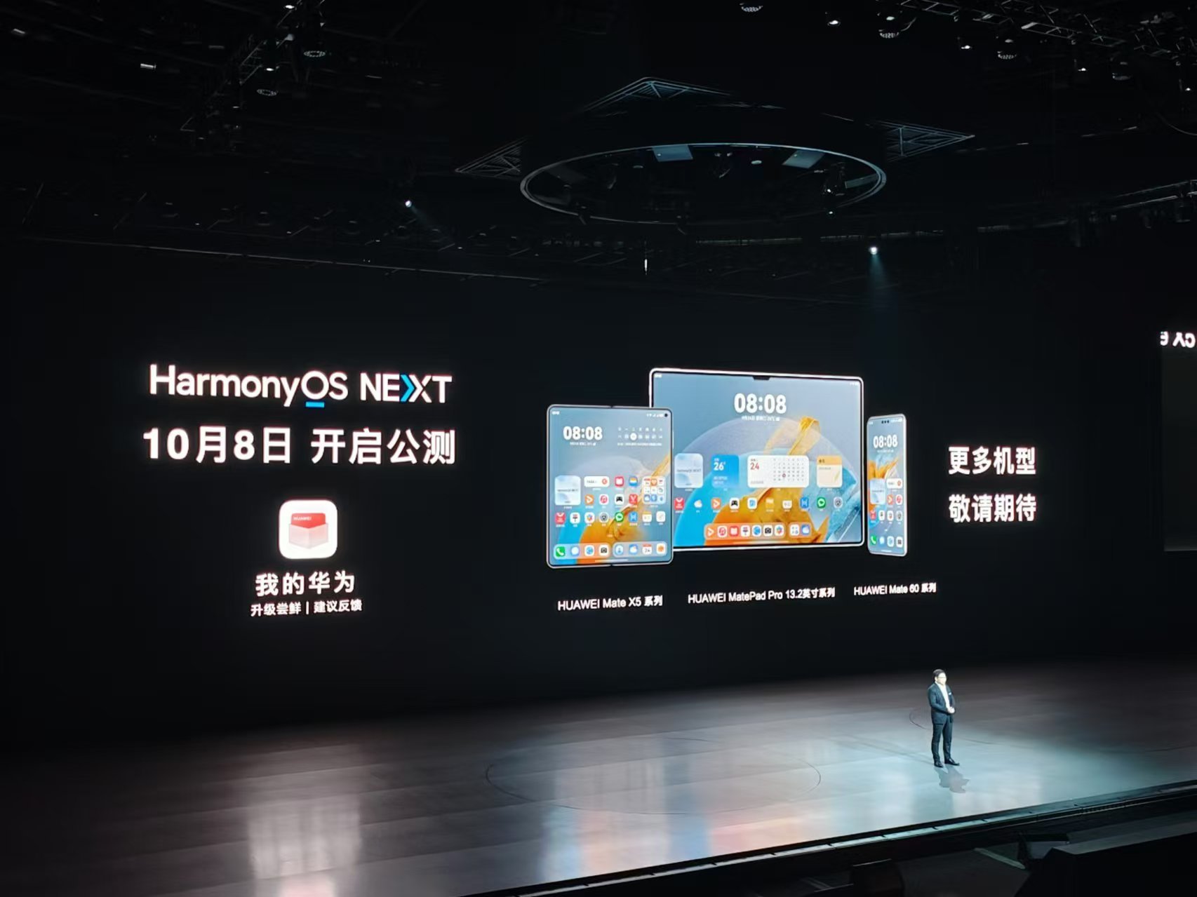 9月24日下午,观察者网在华为秋季全场景发布会上了解到,被称为“纯血鸿蒙”的HarmonyOS NEXT将于10月8日开启公测,首批参与公测的机型包括华为Mate 60系列、华为Mate X5系列,以及华为MatePad Pro 13.2英寸系列。