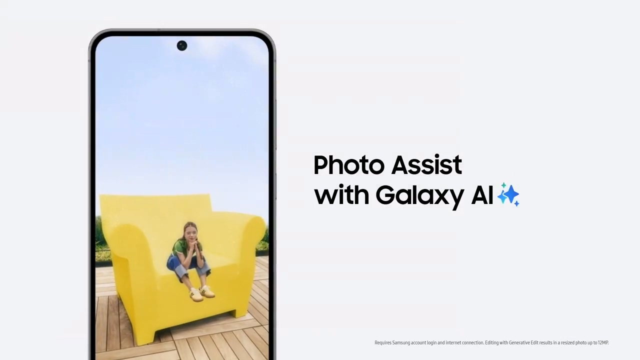 Photo Assist 属于 Galaxy AI 的技能之一,帮助用户创作艺术照,例如抠出人物照片,然后动态调整比例,缩小放在椅子前方。