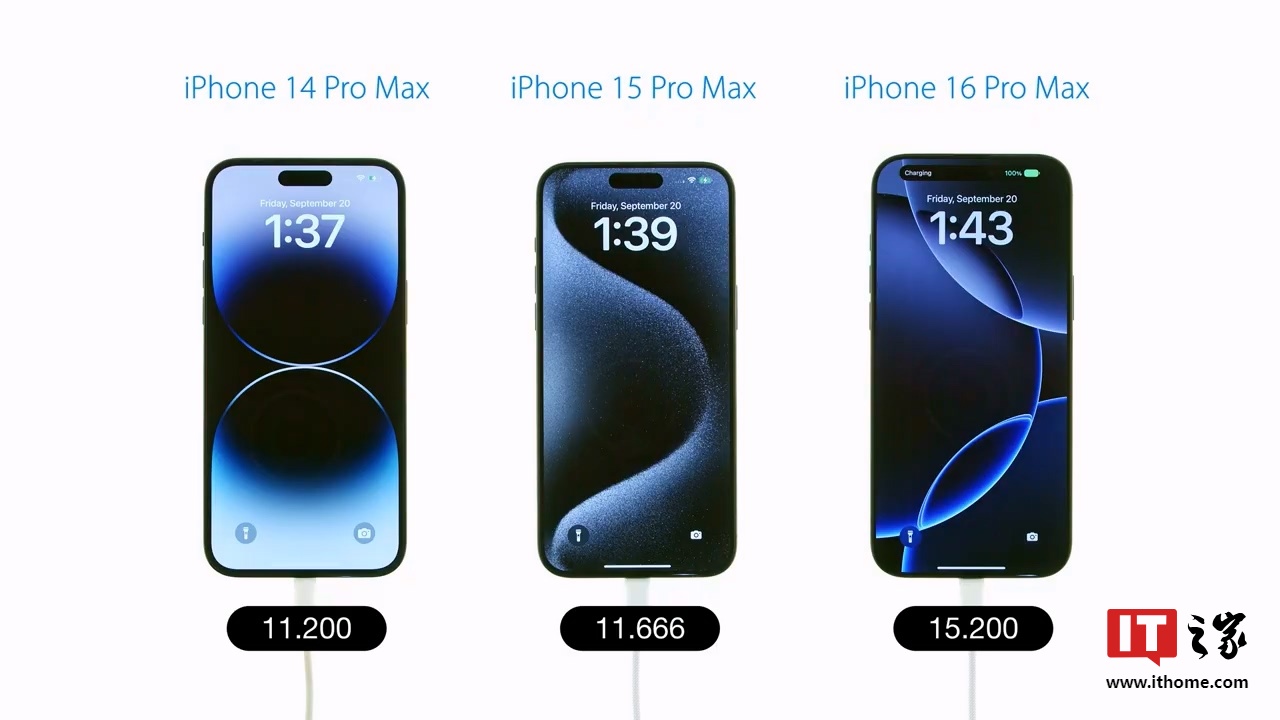 该媒体还测试了 iPhone 14 Pro Max、iPhone 15 Pro Max、iPhone 16 Pro Max 三款手机的开机速度,14 开机速度最快,15 紧随其后,而 16 开机时间比前代产品长了约 4 秒钟。