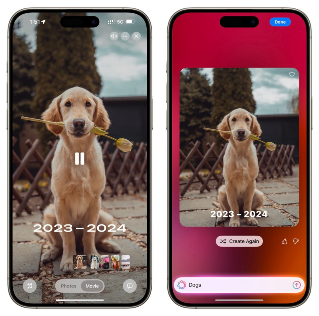 儘管 Apple Intelligence 可以有效地將相片轉換成影片,但結果並非總是精準。例如,我曾要求創建一個關於狗的回憶影片,但結果影片中包含了一段馬的視頻,甚至還有一張漢堡王華堡的特寫,以及我三歲侄女的照片。