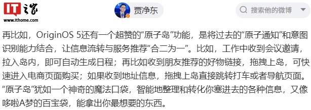文章来源于互联网:IT之家-vivo 原子通知升级「原子岛」,OriginOS 5 系统支持信息流转与服务推荐“合二为一”