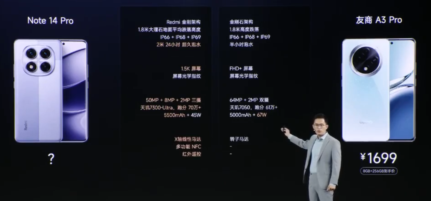 小米 Redmi Note 14 Pro 系列全系支持 IP66、68、69 防尘防水。