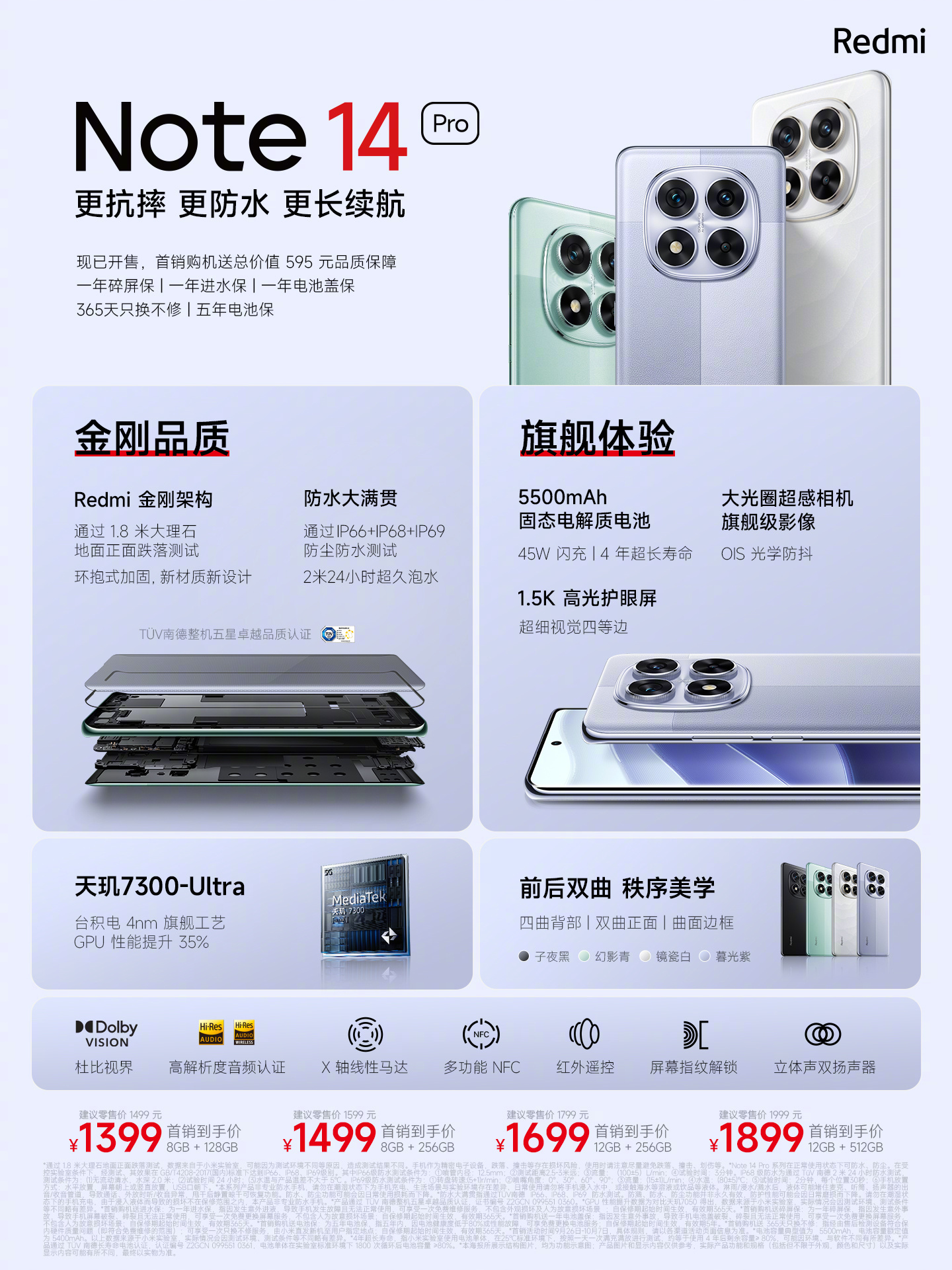 Redmi Note 14 Pro 首销期间,总价值 595 元保障免费送: