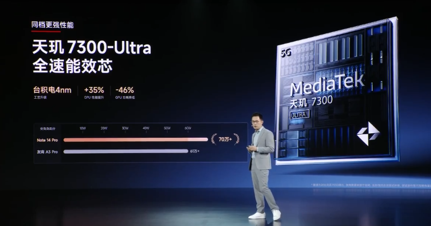 Redmi Note 14 Pro 配备天玑 7300-Ultra 处理器,搭载索尼 LYT-600 主摄传感器,后置 50MP + 8MP + 2MP 三摄,前置 20MP 镜头。