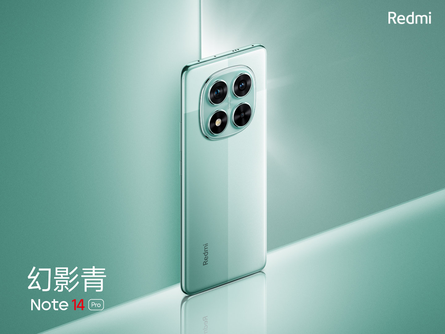 Redmi Note 14 Pro 可选暮光紫、幻影青、镜瓷白、子夜黑四款配色,第一次采用曲面屏设计,同时背部采用了拼色设计(幻影青、暮光紫)。