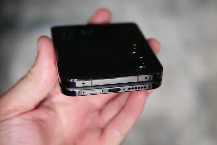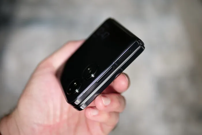 至於其他方面,折疊後的機身厚度為16mm,比Galaxy Z Flip 6多出1mm,展開後也大致相同。這使得其手感略顯厚重,且令人擔憂的是並沒有提供防水或防塵的IP等級。我也不喜歡內部鉸鏈保護升起在屏幕上方的設計,這看起來便宜且手感不佳。該手機重量為190克,與競爭對手大致相同,而鉸鏈的操作靜音且回彈良好。雖然無法與Galaxy Z Flip 6的硬體相比,但在Razr 2024面前仍具競爭力。
