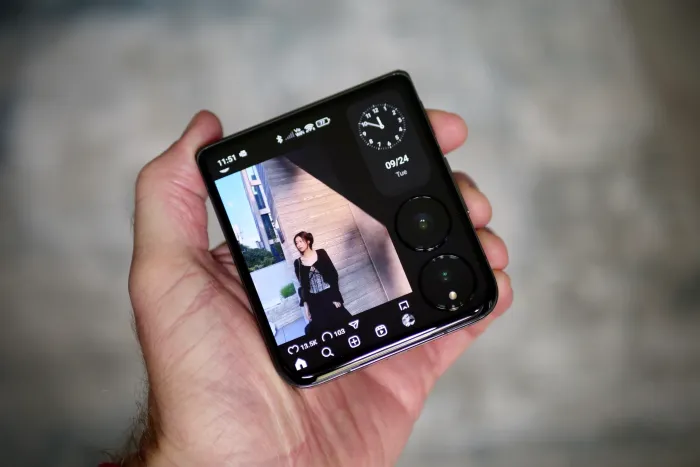 用戶可以從各種應用程序中選擇在外屏上使用的選項,並且這些應用的格式設計得相當好,包括WhatsApp和Instagram。我並不打算在相對較小的屏幕上長時間使用這些應用,但如果需要,我可以這樣做。該軟體非常快速且反應靈敏,我無需打開手機就能完成基本操作,這也是我與Mix Flip一同生活的方式。相比於三星 Galaxy Z Flip 6 的外屏,Mix Flip 更易於設置,使用起來更方便,且面板質量也高於摩托羅拉 Razr Plus 2024,這是一個出色的設計,確實成為選擇Mix Flip的原因之一。