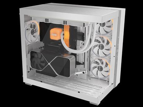 Light Base 600900 机箱均配备纵向贯穿机箱前面板的大尺寸多列 ARGB 灯带,支持背插主板,可轻松在标准、倒置和水平三种模式间切换,并集成了无论显卡水平或垂直安装均可防止其下坠的灵活支架。
