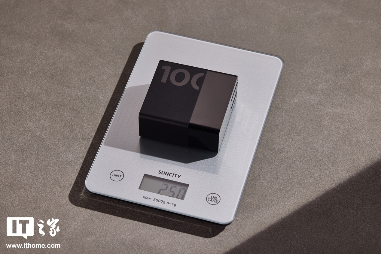 重量方面,100W 版本的充电器经IT之家实测刚好是 250g,适合作为笔记本、手机、平板等充电器的短途差旅替代。
