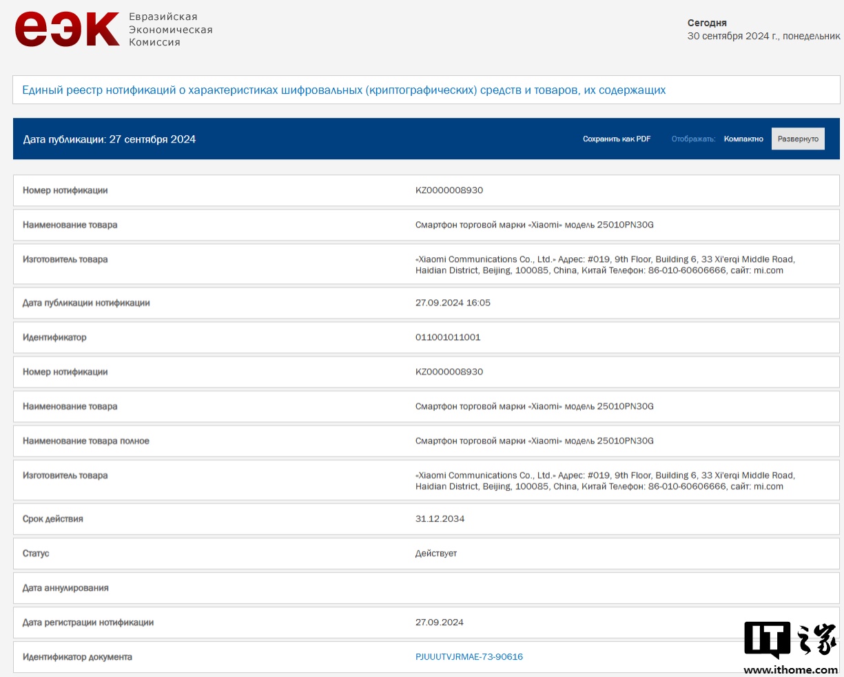 IT之家 9 月 30 日消息,小米 15 Ultra 国际版(25010PN30G)已于 9 月 27 日获得欧盟 EEC 认证,预计将在 2025 年 1 月推出,预装澎湃 OS 2 系统。