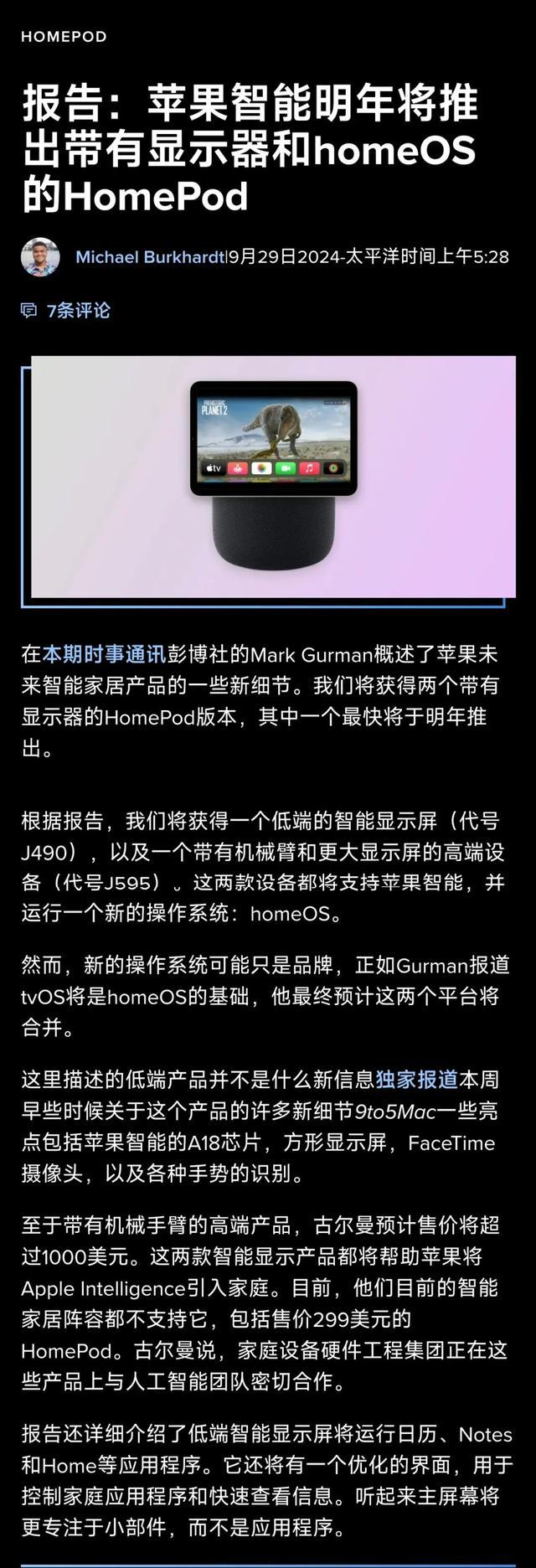 苹果新的智能家居终端、新的 homeOS 系统和「Apple 智能」中文版,让大家对明年的产品充满了期待。