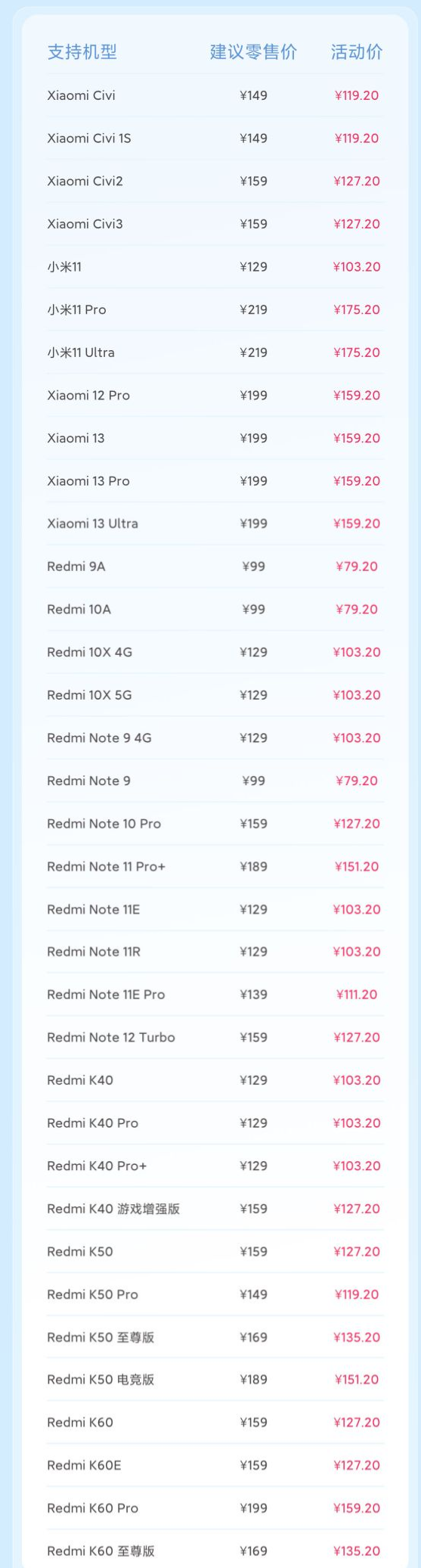 12 款机型,8 折手机后盖换新:
