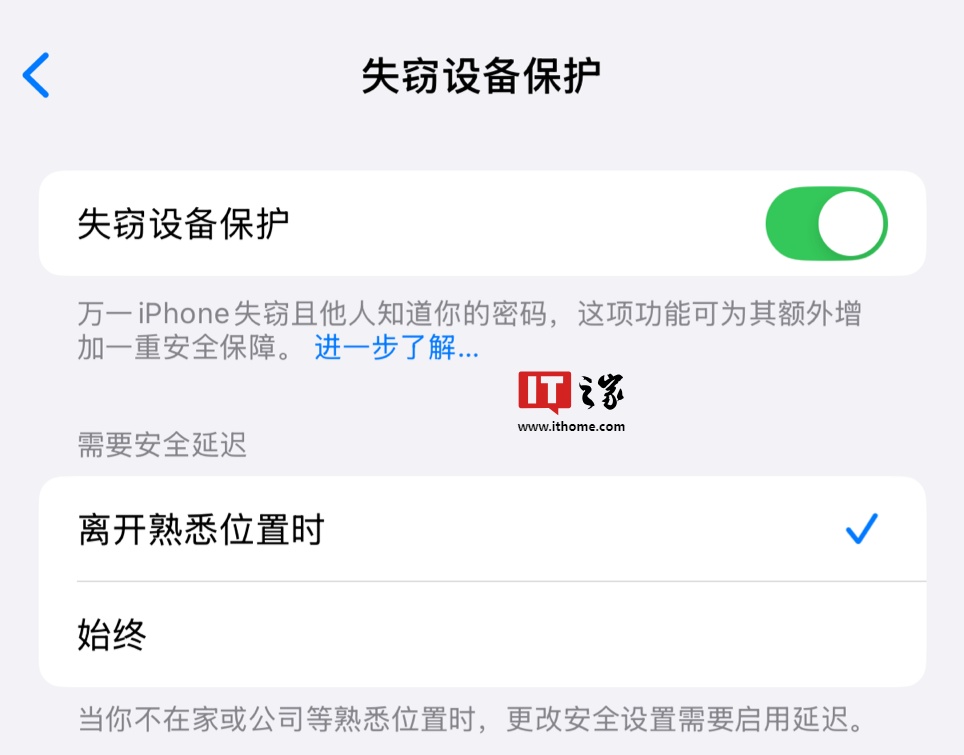 此外根据用户反馈,iOS 18.0.1 更新还引入带来“失窃设备保护”功能。苹果官方介绍称:“万一 iPhone 失窃且他人知道你的密码,这项功能可为其额外增加一重安全保障。”