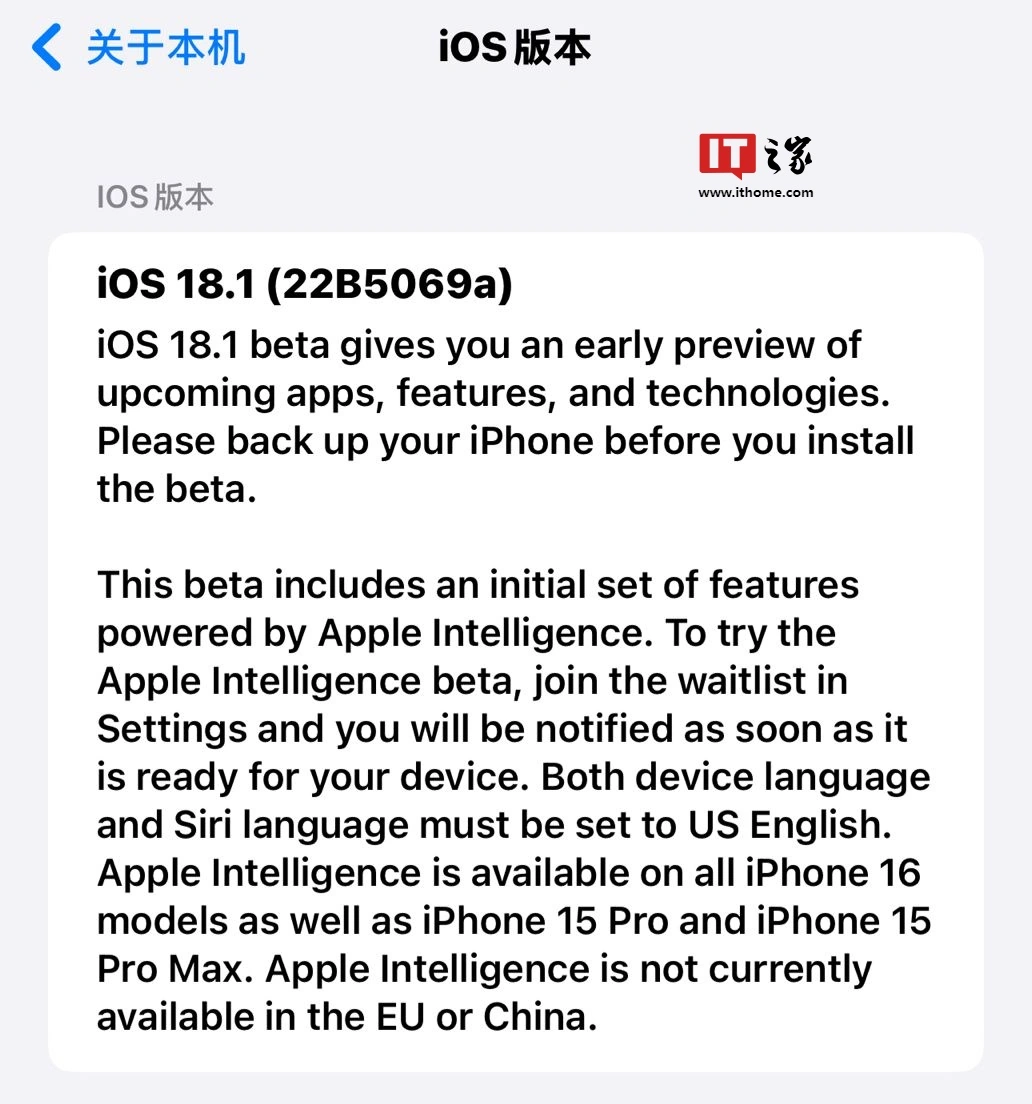 文章来源于互联网:IT之家-苹果发布 iOS / iPadOS 18.1、macOS 15.1 Sequoia 第 3 个公测版