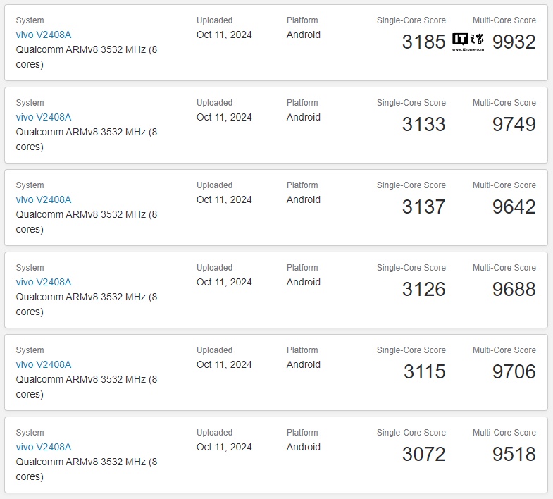 这款机型预装基于安卓 15 的 OriginOS 5 系统,配备 16G 内存,IT之家看到其跑分记录中达到了单核 3185 分,多核 9932 分。