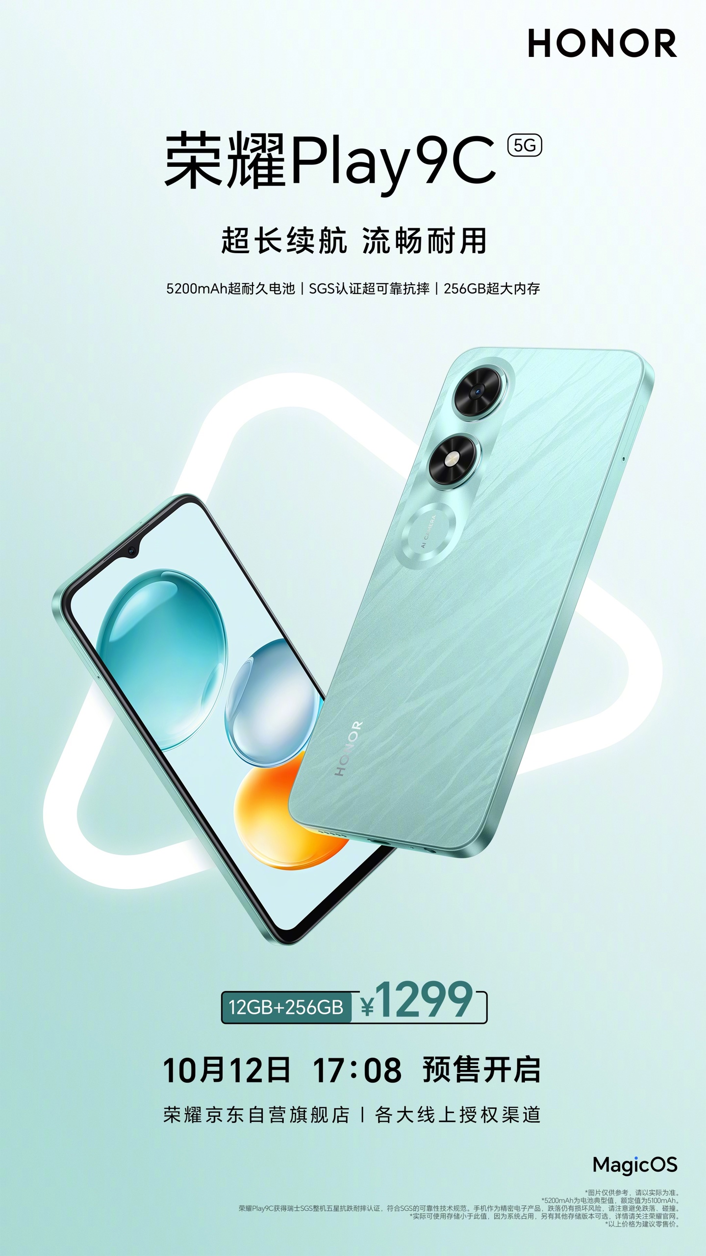 京东荣耀 Play9C 12GB+256GB1299 元直达链接