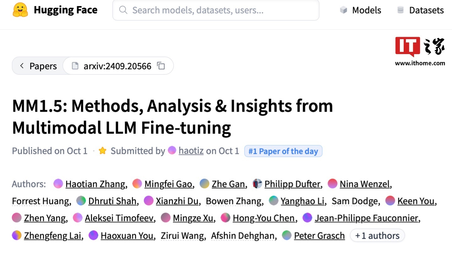 IT之家 10 月 13 日消息,苹果公司现已为旗下多模态大模型 MM 推出 1.5 版本,该版本模型基于前代 MM1 的架构,继续延续数据驱动的训练原则,重点研究在不同训练周期中混合不同类型数据对模型性能的影响。