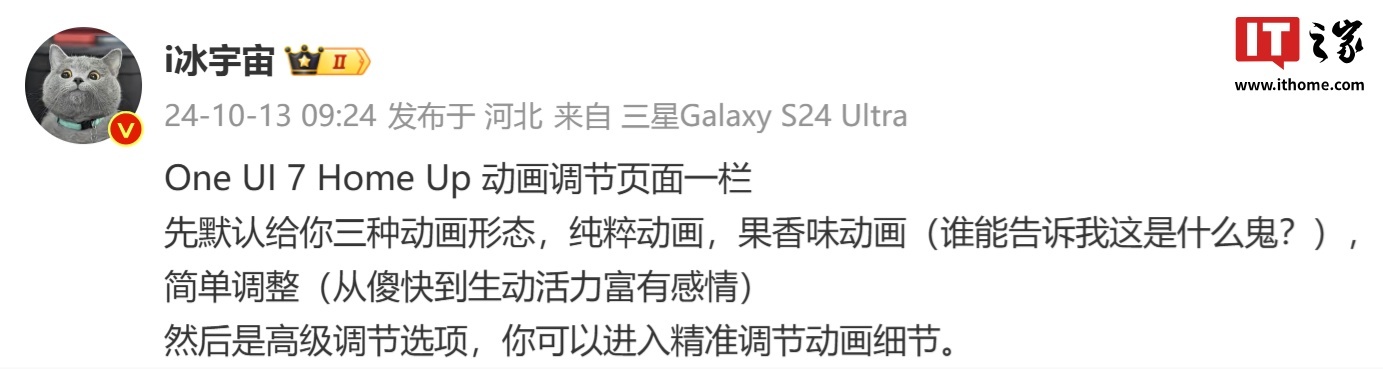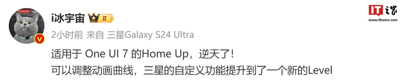 IT之家 10 月 13 日消息,博主 @i冰宇宙 今日透露,适用于 One UI 7 的 Home Up 可以调整动画曲线。