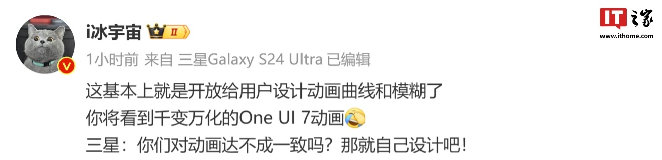 博主称:“这基本上就是开放给用户设计动画曲线和模糊了,你将看到千变万化的 One UI 7 动画。”