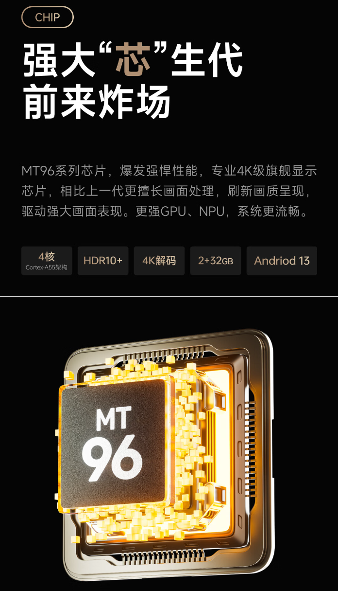 小明 Q5 Pro 搭载 MT96 系列芯片,标配 2+32GB 内存组合、支持 4K 解码、预装 Android 13 系统;另外投影仪还内置 2×5W 功率音箱,支持杜比音效。
