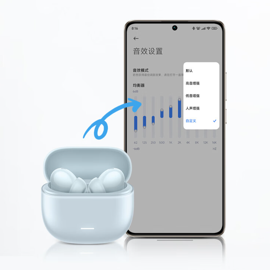 耳机搭载 12.4mm 镀钛动圈单元,支持 AAC 编解码;自带 4 种不同风格预设 EQ 音效,支持自定义 EQ 音效。