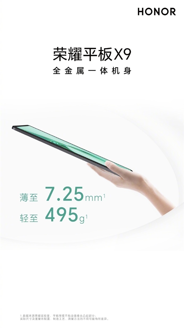 文章来源于互联网:凤凰网-荣耀平板X9将采用旗舰级同款用料:金属一体机身设计