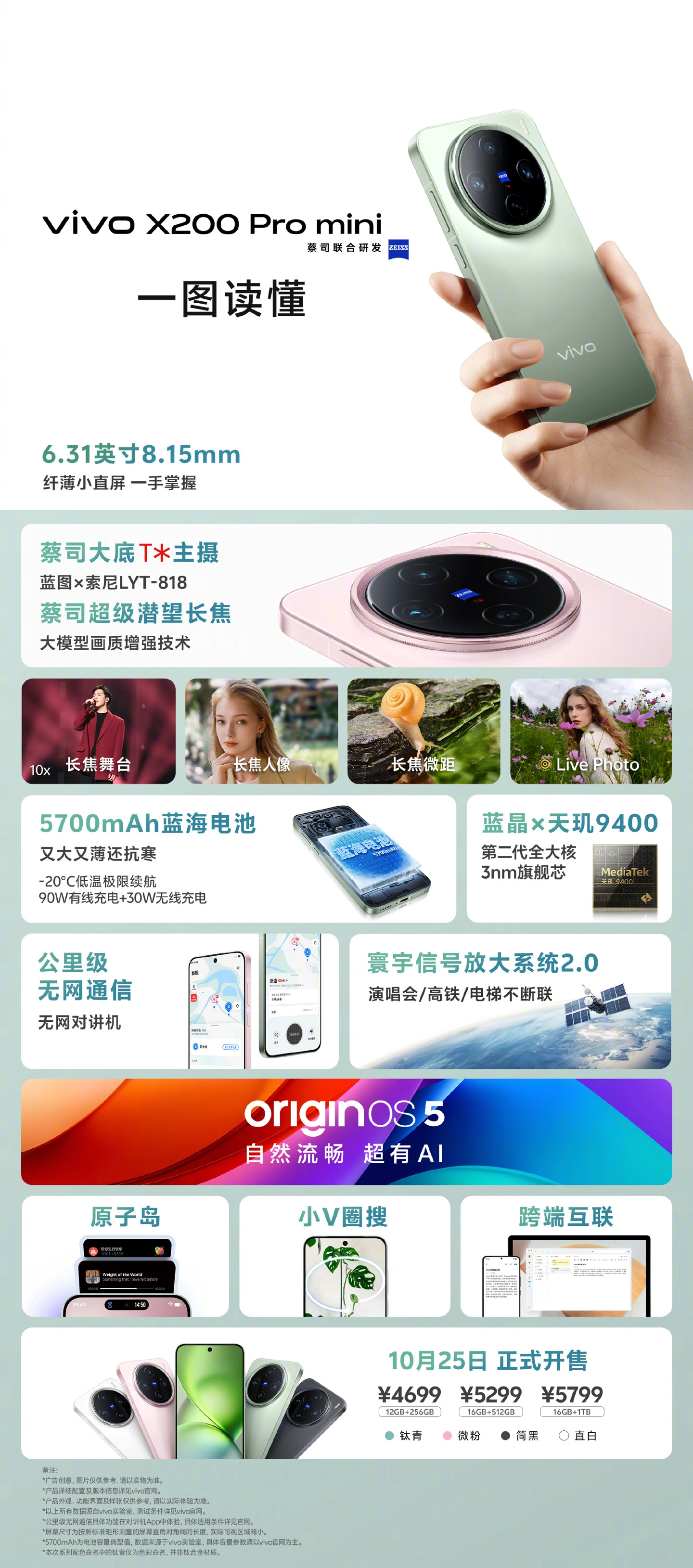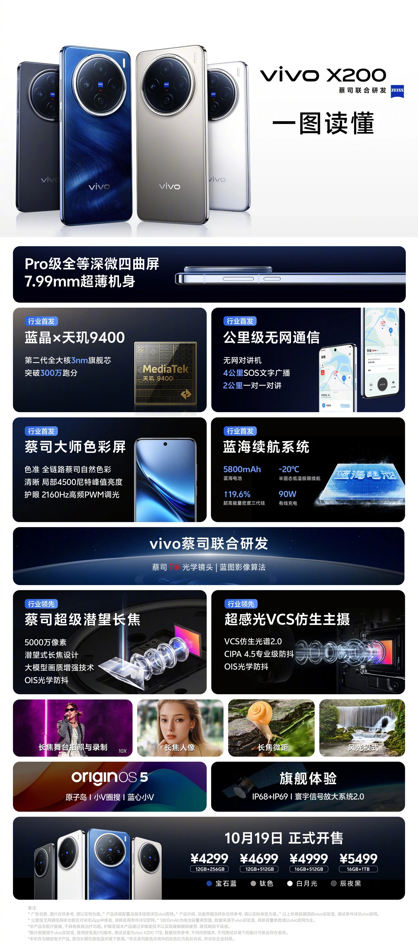 据IT之家报道,vivo X200 系列手机昨晚正式发布,全球首发天玑 9400 处理器,标准版售价 4299 元起,Pro 版(含 vivo X200 Pro 和 vivo X200 Pro mini)售价 4699 元起。