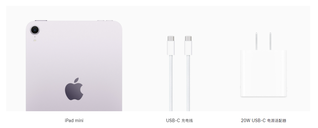 目前,仅在欧洲地区 iPad 包装盒中不附带充电器。iPad mini 7 在美国、加拿大、澳大利亚、日本、巴西等世界其他国家仍附带一个 20W USB-C 充电器。