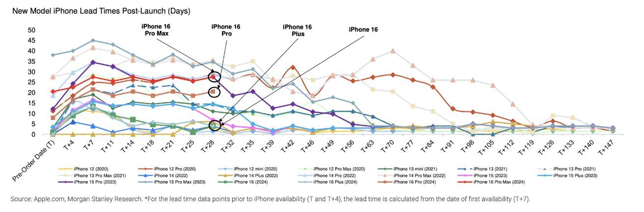 摩根士丹利指出,iPhone 16 系列销售情况一直是低于预期,但苹果并未削减对 iPhone 16 系列的订单。