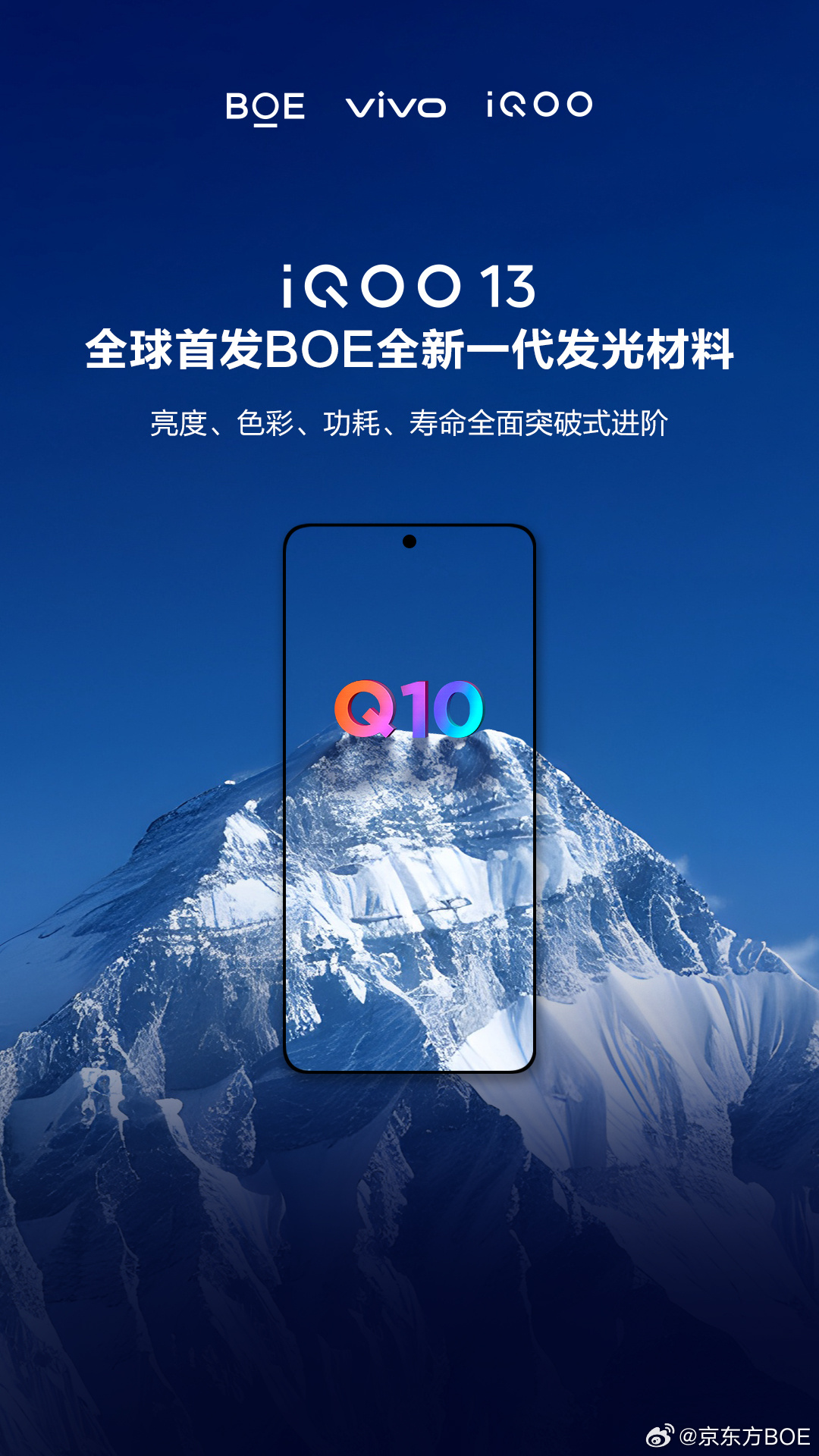 文章来源于互联网:IT之家-iQOO 13 手机采用 2K Q10 珠峰屏,全球首发京东方最新 Q10 发光材料