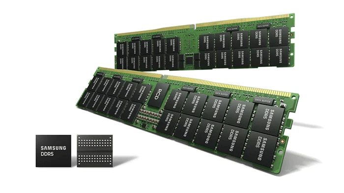 ▲ 基于三星 12nm 级 DDR5 DRAM 的服务器内存条