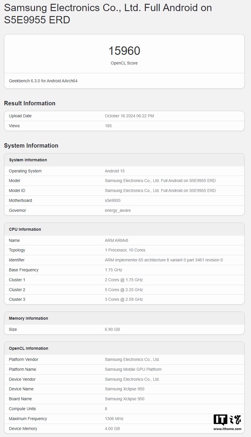 文章来源于互联网:IT之家-三星 Exynos 2500 现身 Geekbench:3+5+2 核配置,采用 Xclipse 950 GPU