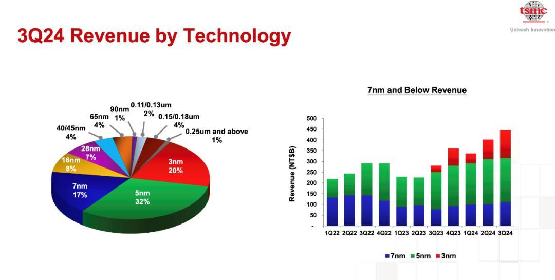 不过据《电子时报》报道,凭借3纳米和5纳米这两个高端制程,台积电有望在前三季度创造约1万亿新台币(310亿美元)的营收。2024年前三个季度台积电的收入总计新台币20,258.5亿元,比2023年同期增长 31.9%。
